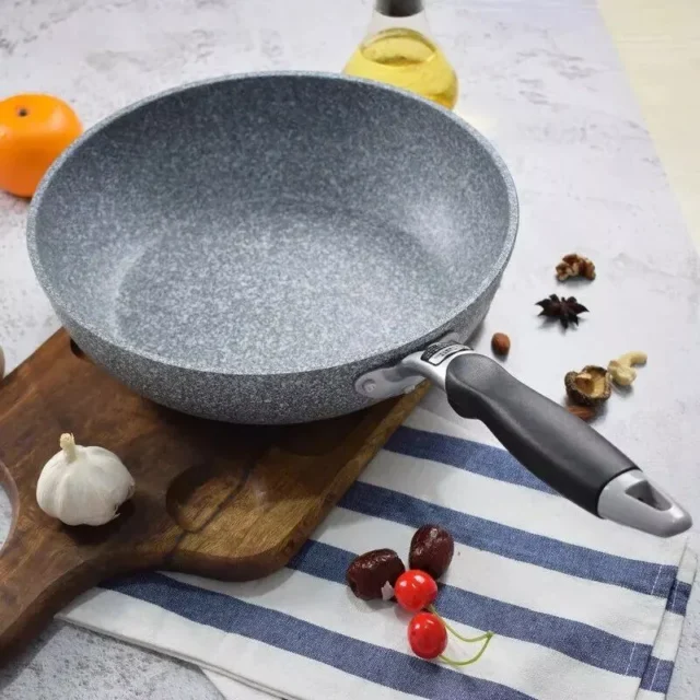 What sets our frying pan apart is not just its functional features, but also its commitment to your health and convenience. The Japanese Daikin EK series healthy non-stick coating has passed rigorous wear tests, ensuring both safety and longevity. The aluminum alloy base with a 430 stainless steel magnetically conductive bottom guarantees uniform heating. The gum wood anti-slip handle, reinforced with long screws, provides a secure and comfortable grip, making your cooking experience both safe and enjoyable.