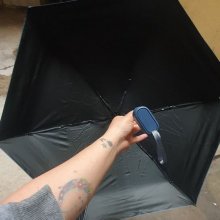 Came properly packed and without any defect. It's small, I bought it to put in my bag. As I always go by bus or on foot. Sometimes it's good to have a parasol. But I have the notion that maybe it will only serve a very weak drizzle or sometimes a strong sun that is hindrering with the walk.