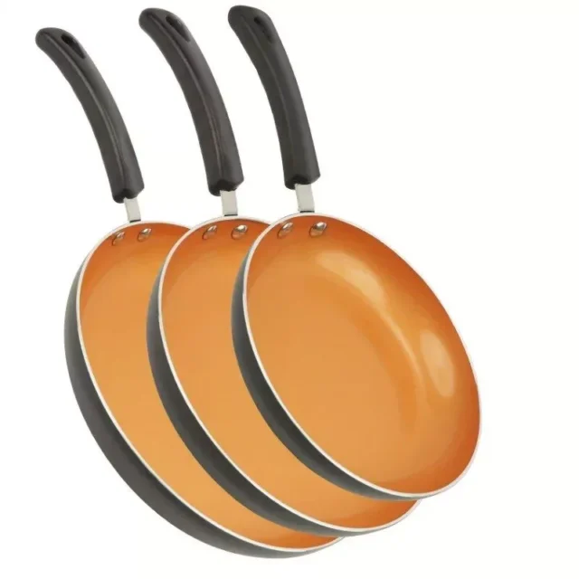 Introducing our elegant and highly functional Golden Ceramic Nonstick Frying Pan Set – a must-have in every modern kitchen. This set of three pans, varying in size from 8 inches to 11 inches, is perfect for a range of cooking tasks, from flipping omelettes to searing meats. The sleek golden ceramic finish not only adds a touch of sophistication to your kitchen but also ensures an exceptional nonstick experience.
