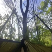 Used this hammock for 4 nights in the Olympic Nation Park, it was light, easy to set up, and very comfortable. I’d give it 5 stars but the tree straps that come with it are a little jinky and too short for most trees in Western Washington. Before I went on my trip I ordered different 20’ long straps.