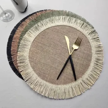 Eco-Friendly Linen Round Placemat with Fringe – Heat Resistant, Non-Slip Kitchen Table Mat
