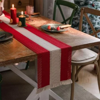 Chic Geometric Cotton Linen Table Runner with Tassel