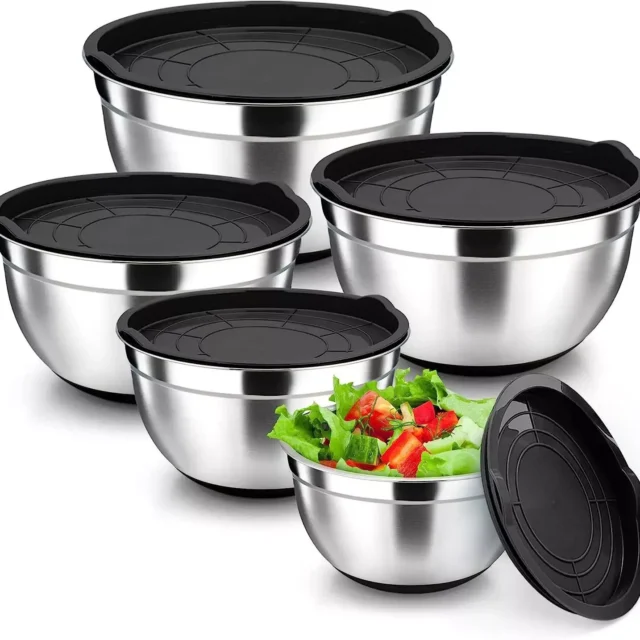 Unleash your culinary skills with our 5-Piece Stainless Steel Mixing Bowl Set, designed to make your kitchen experience seamless and enjoyable. Whether you’re a seasoned baker, a cooking enthusiast, or just starting your culinary journey, this set caters to all your kitchen needs. From mixing and baking to serving and storing, each bowl is crafted to offer convenience, durability, and elegance.