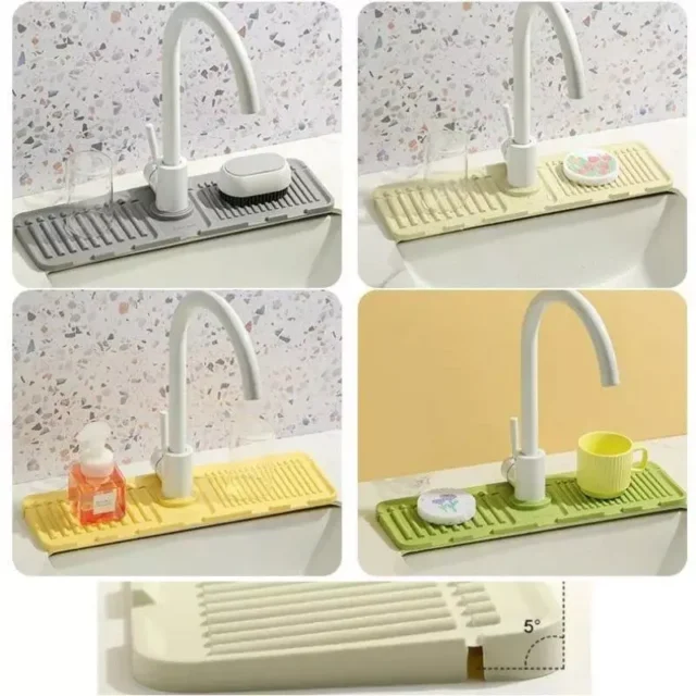 Experience the ultimate convenience in your kitchen and bathroom with our Multi-Functional Faucet Splash Guard and Draining Tray Mat. Say goodbye to the days of wiping down wet countertops and struggling with water spillage. This elegantly designed mat is not just a practical solution but also an enhancement to the aesthetics of your sink area.