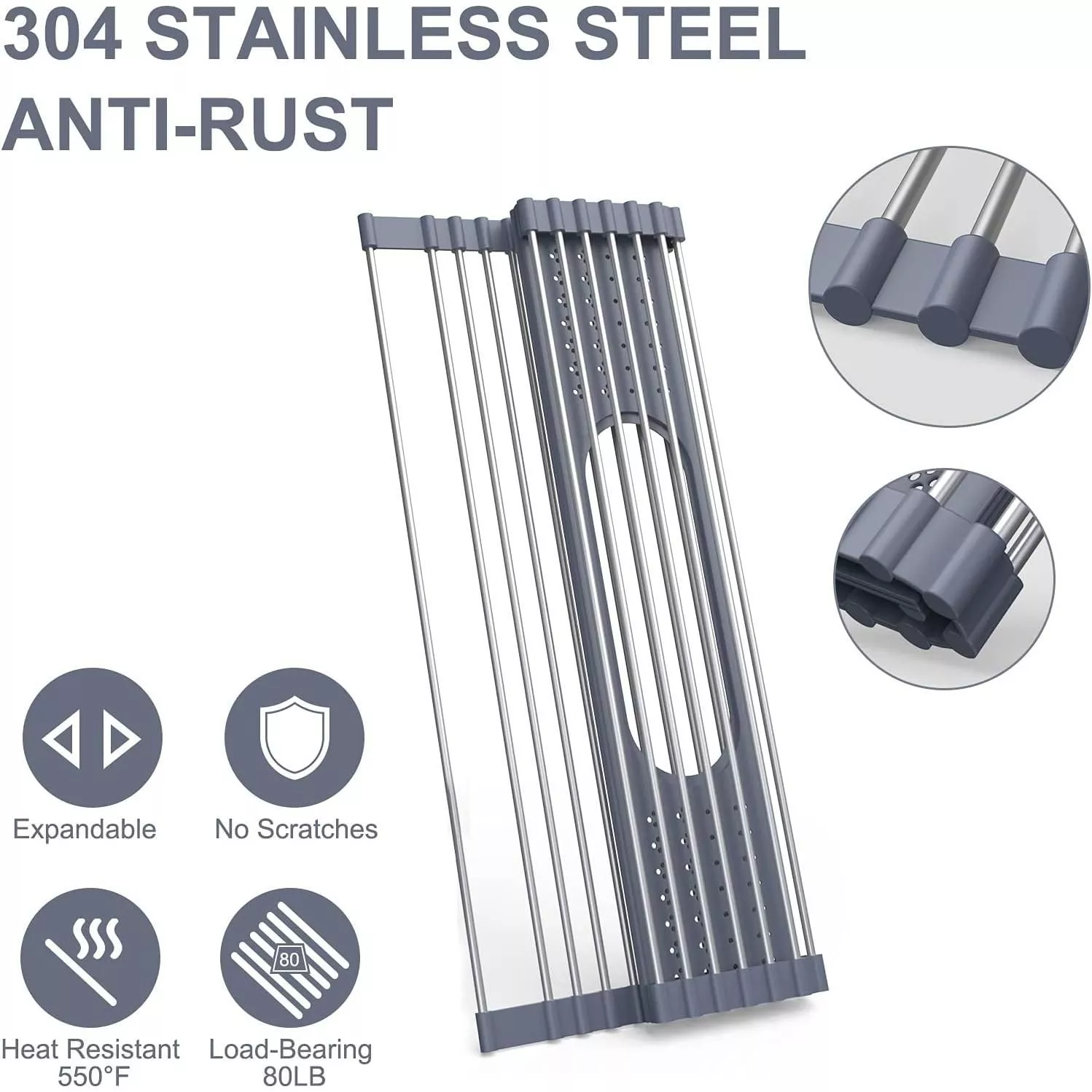 Transform your kitchen with the Multi-Use Adjustable Silicone Over Sink Drying Rack, the ultimate solution for modern kitchen organization and space-saving. Designed to fit over your sink, this premium quality drying rack is an essential for every home. Made with BPA- & BPS-free platinum-grade silicone and sturdy stainless steel, it offers reliability and eco-friendly safety.