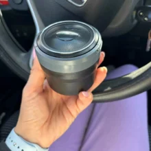This ashtray is a fantastic little gadget that puts an end to tossing cigarette butts out the window. It fits snugly into cup holders, and the securely closing lid prevents any stale cigarette smell in the car. Cleaning it is effortless, and the internal light is a great addition for nighttime use.