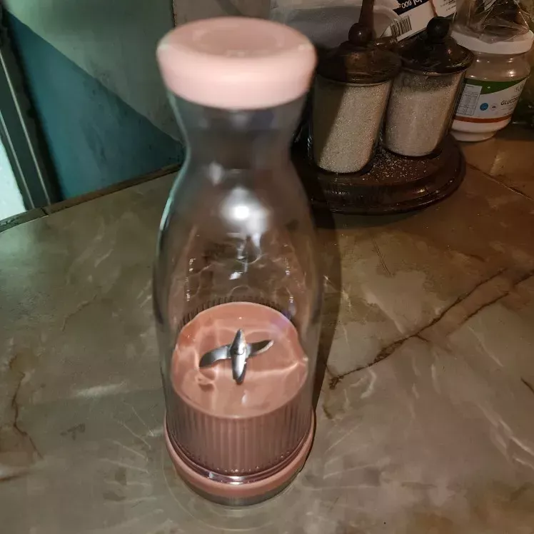 This small blender is great for making a quick smoothie. It works well unless the fruit or ice clumps up, but you can shake it or break the pieces to fix that. It's fast, doesn't take much space, and you can shake it to mix things. It's good for making a single smoothie or a small amount of food.
