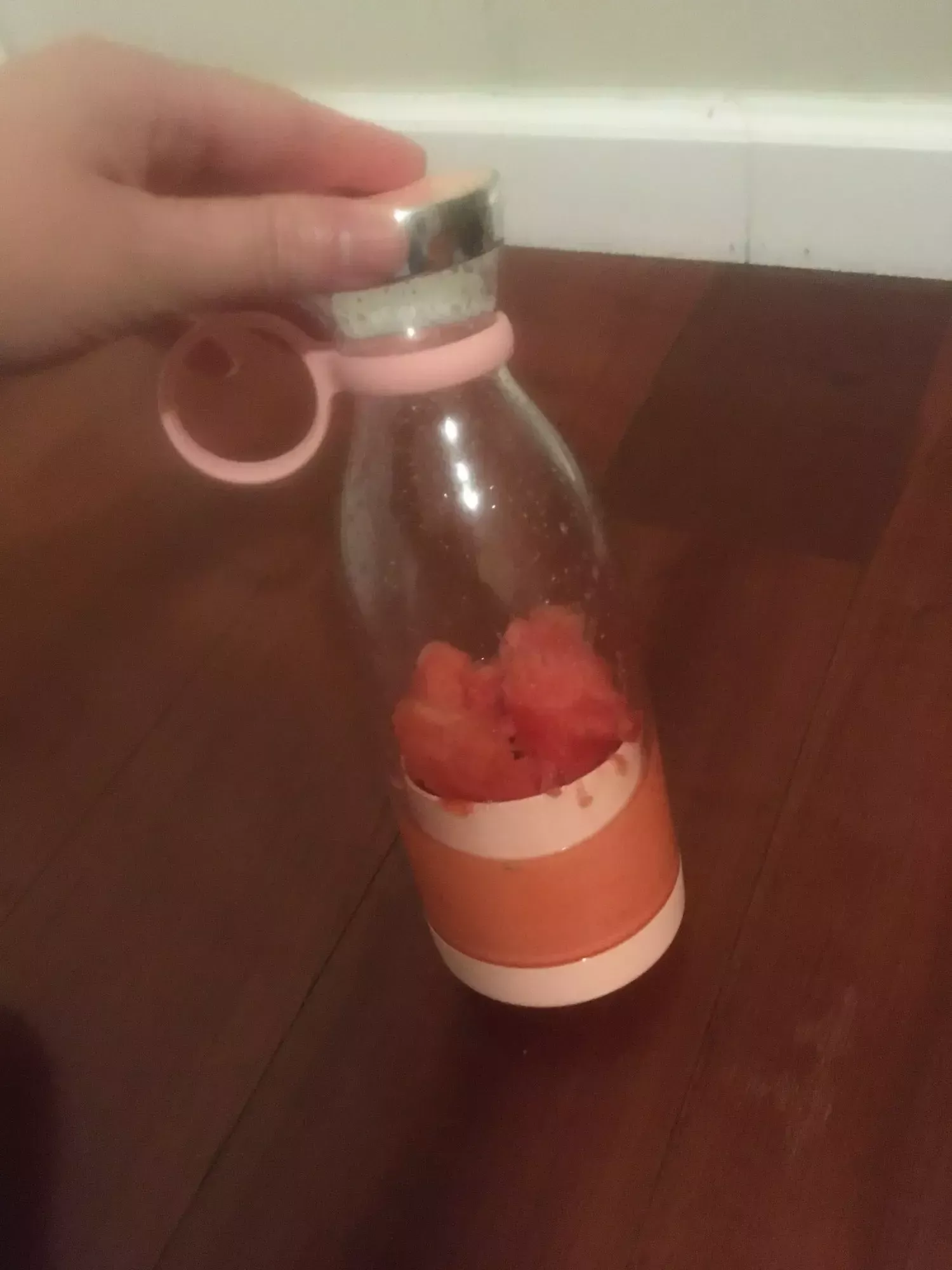 This portable blender is great. It’s quiet and easy to clean. I blend medicine powder with pineapple juice in it.