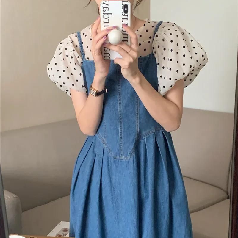 Summer Denim Halter Vintage Dress – Sleeveless High Waist Korean Style