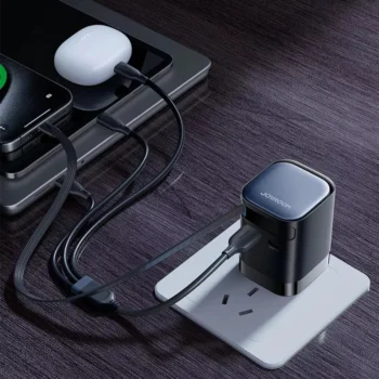 65W GaN Charger with Retractable USB-C Cable for iPhone, iPad, and Laptops