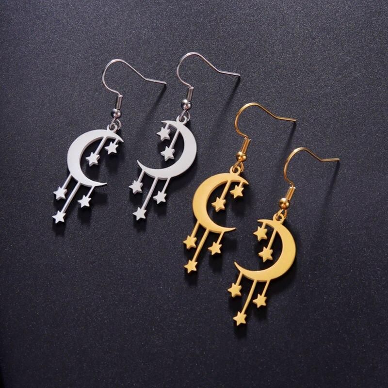 Starry Moonlight Stainless Steel Dangle Earrings for Women