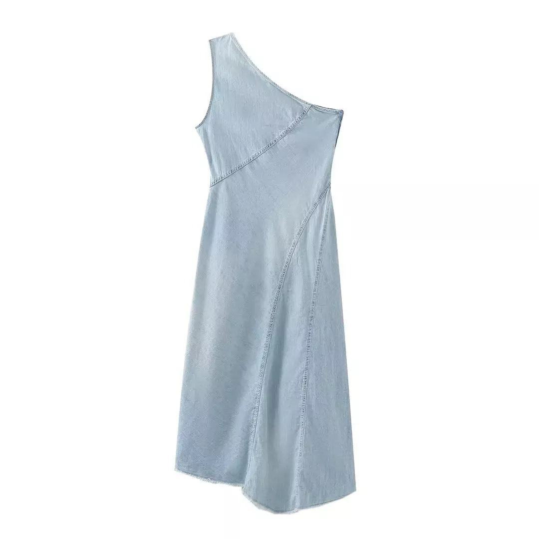 Blue Asymmetric Bodycon Midi Dress – Sleeveless Summer Chic