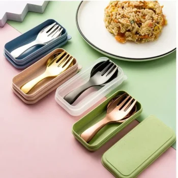 Compact Stainless Steel Spoon & Fork Set with Lunch Box – Ideal for Camping and Outdoor Adventures
