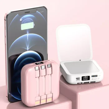 20000mAh Mini Power Bank with Built-in Cable and Makeup Mirror