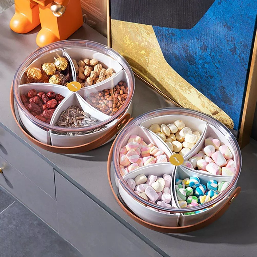Discover the ultimate solution to serving snacks, dried fruits, nuts, candies, and vegetables with our Round Clear Divided Serving Tray. Designed for the modern host, this tray combines functionality with style, making it a must-have for any gathering. Its transparent design not only showcases your colorful snacks appealingly but also adds a touch of sophistication to your setting.