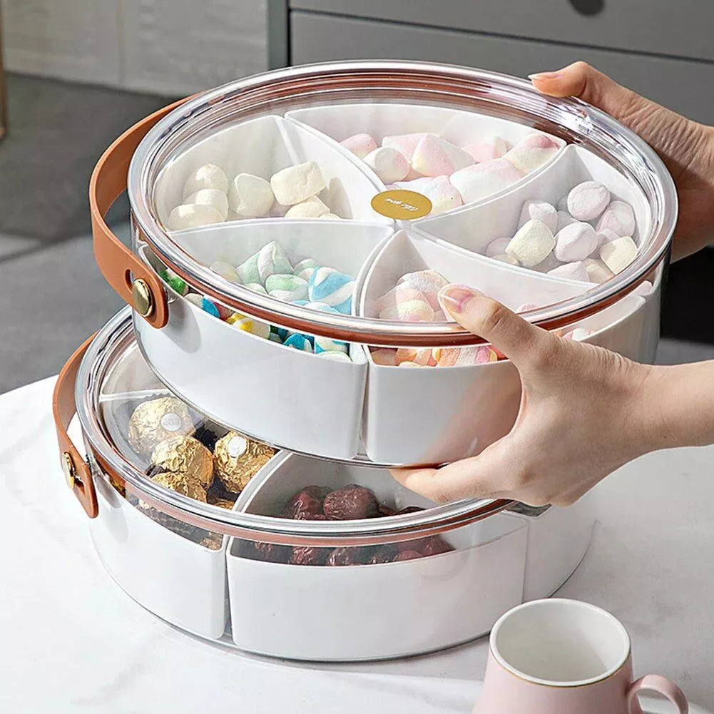 Our serving tray is not just another dish; it’s a versatile, stylish, and practical solution for all your hosting needs. Whether it’s a casual family gathering, a sophisticated party, or everyday use, this tray has you covered. The separate compartments allow for a variety of snacks without mixing flavors, and the lid ensures everything stays fresh until you’re ready to serve. The easy-to-carry handle and stackable design make it a breeze to use and store, while the durable materials ensure longevity and easy cleaning (note: not dishwasher safe).